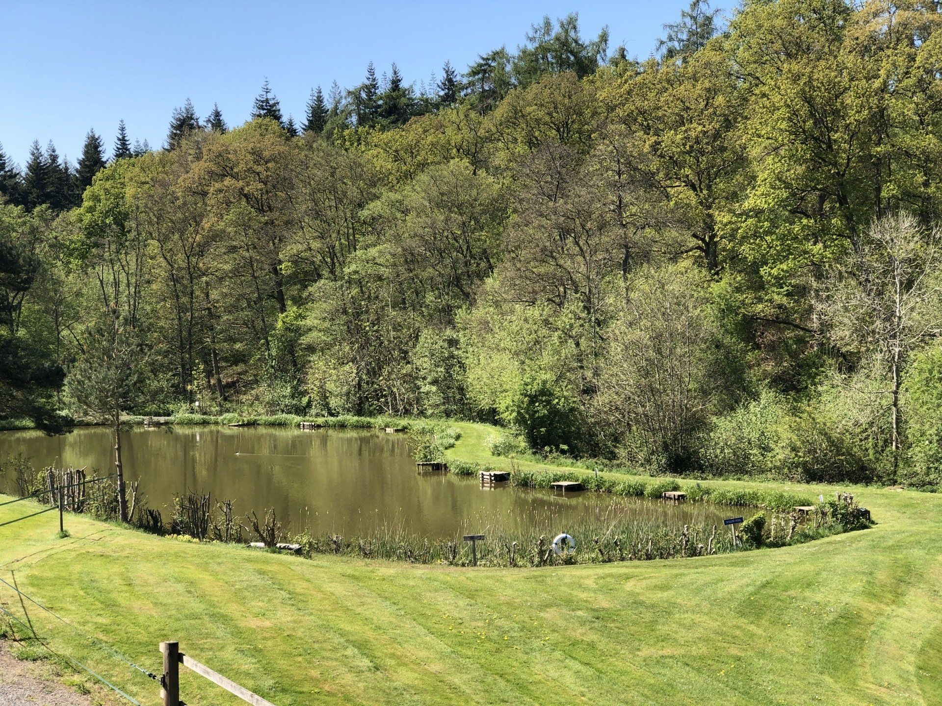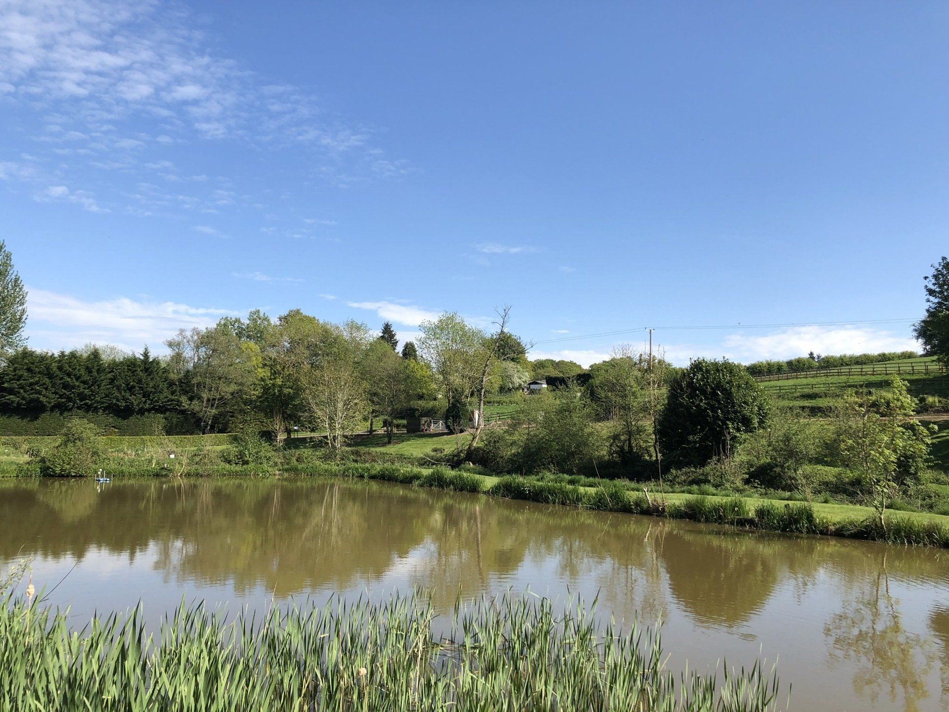 Mucky Meadow Pool Fish Selection: Roach 3lbs, tench 3lbs, bream 3-4lbs and up to 12lbs, crucian carp 3lb, common carp average 3-6lb, mirror carp average 3-6lbs, ghost carp average 3-6lbs. Chub average 1½-3lbs. Also has golden orfe, perch and rudd.